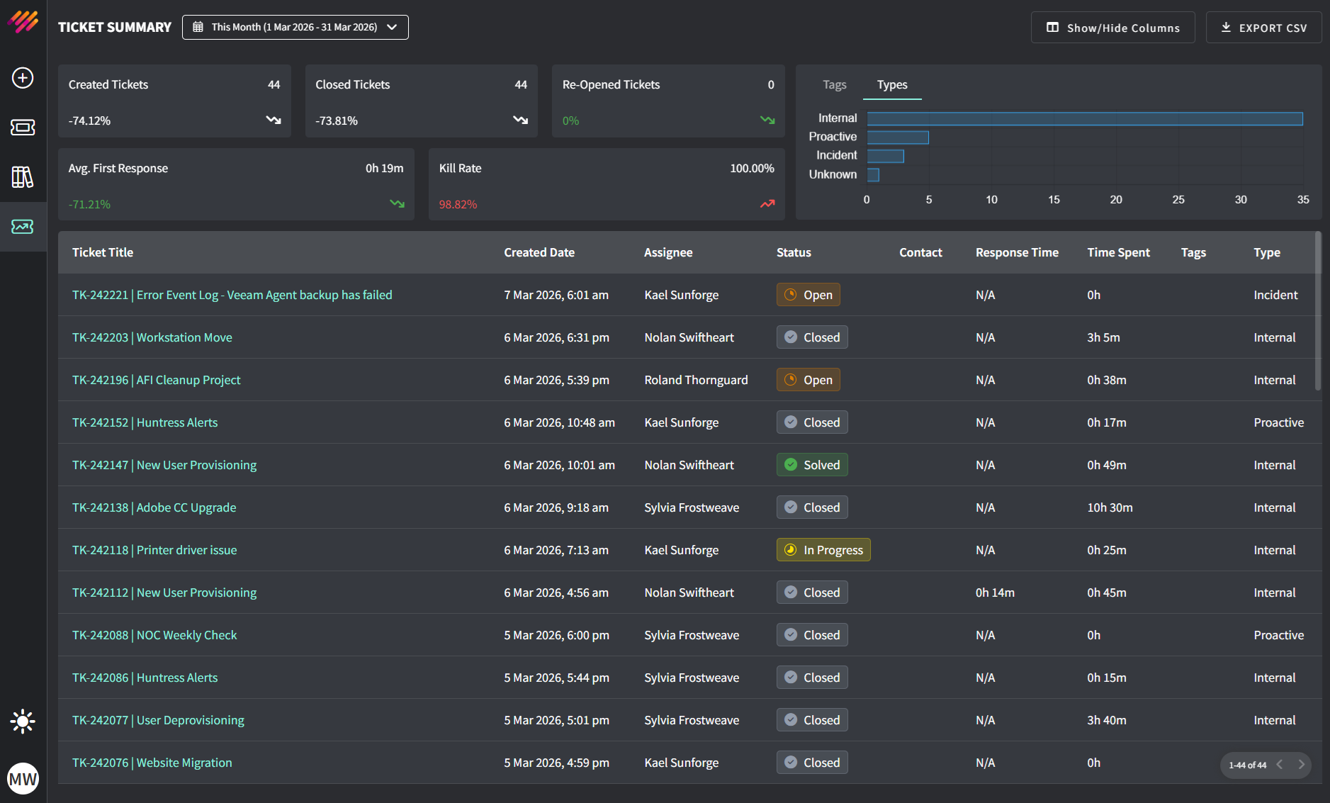 π¦ Portal - The Ticket Summary Report is now available in the Client Portal using the βPortal - All Ticketsβ tag
